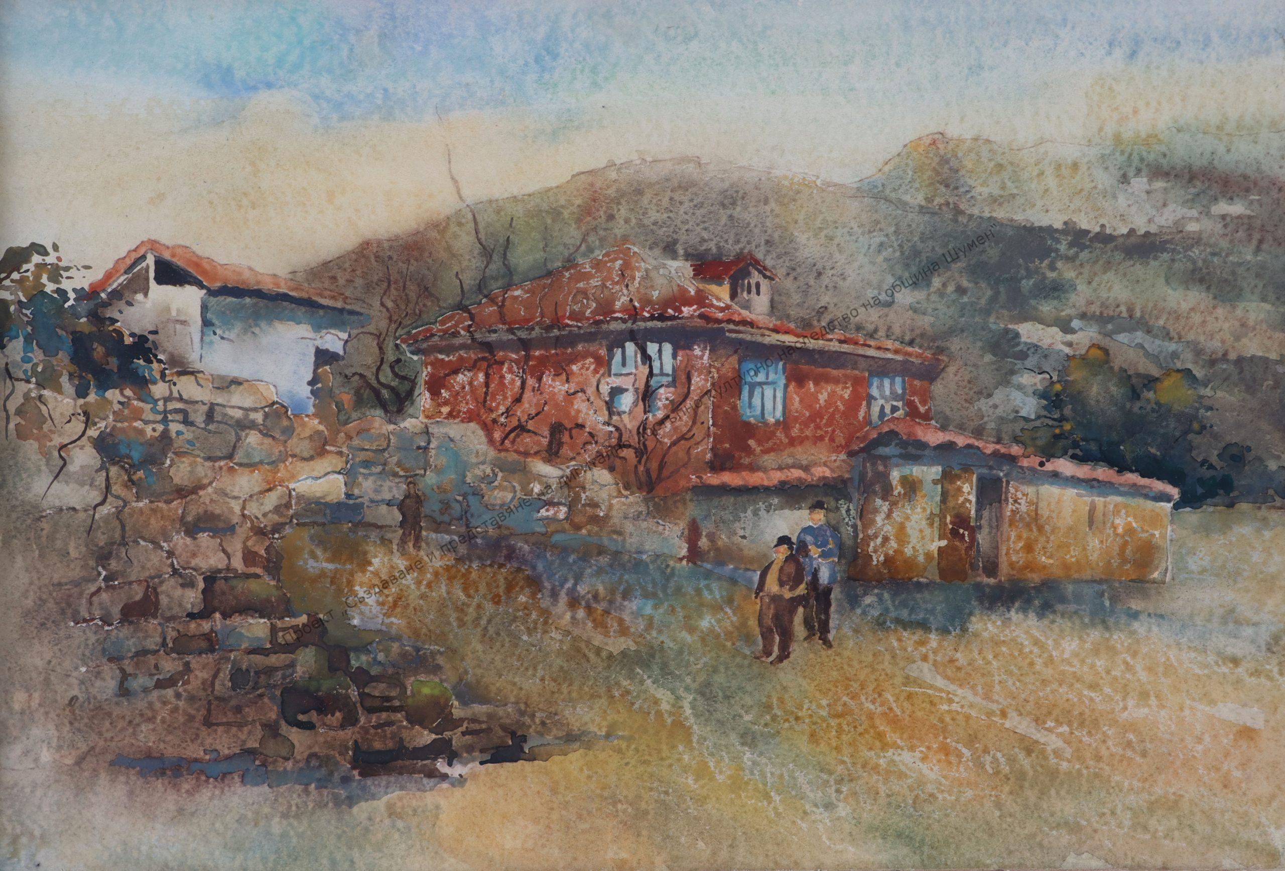 NEDEV, Zdravko Nedev Gerov (6.II.1917-1981). Born in Shumen. He studied at the Shumen Men’s High School, later at the Art Academy. In 1944, he held a solo exhibition in which he showed 42 watercolor landscapes. He works as a scenographer in the theaters in Pleven, Dobrich, Shumen, in the Musical Theater “St. Makedonski”. Since 1963, he has been an editor at HG-Shumen. Member of the Group of Shumen artists since its creation. He works mainly in painting. Participates in regional and national exhibitions. His works can be found in the NHG, abroad – Russia, Hungary, India.