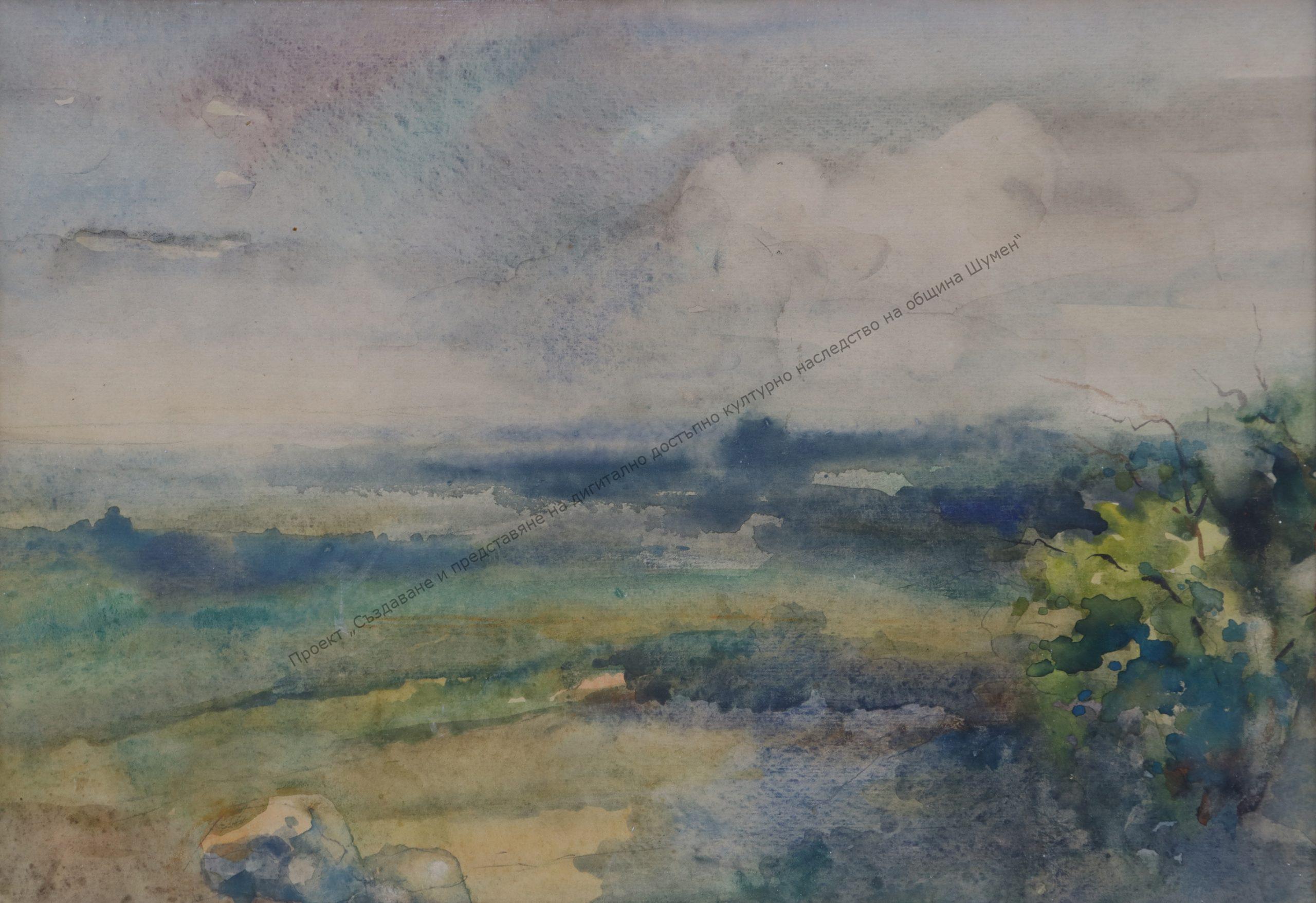 NEDEV, Zdravko Nedev Gerov (6.II.1917-1981). Born in Shumen. He studied at the Shumen Men’s High School, later at the Art Academy. In 1944, he held a solo exhibition in which he showed 42 watercolor landscapes. He works as a scenographer in the theaters in Pleven, Dobrich, Shumen, in the Musical Theater “St. Makedonski”. Since 1963, he has been an editor at HG-Shumen. Member of the Group of Shumen artists since its creation. He works mainly in painting. Participates in regional and national exhibitions. His works can be found in the NHG, abroad – Russia, Hungary, India.